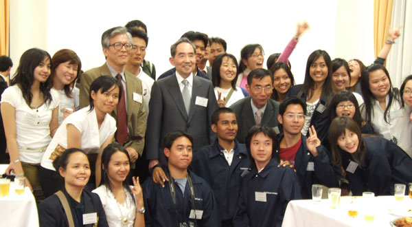 右から尾池総長とエマさん、トゥさん、李さん