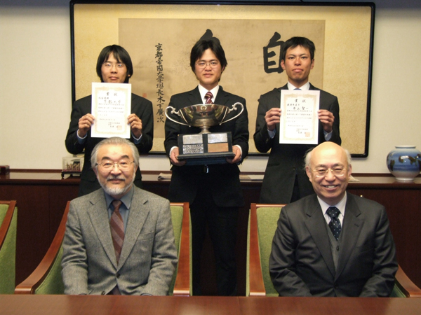 左奥から鈴木裕司さん(会計)、大場康史さん(副将)、井上賢一さん(主将)