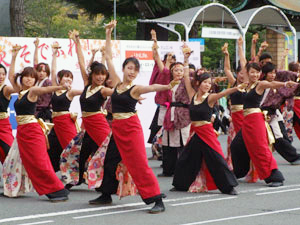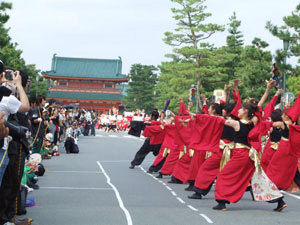 「京炎そでふれ!」:京都らしい曲・振り・衣装などを取り入れ、手には京都の竹の名産地・乙訓の竹を使った鳴り物である「四竹」を持っているのが特徴です