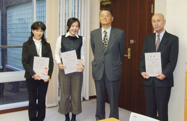 左から、情報環境部 西垣 昌代さん、工学研究科 板橋 佳代さん、木谷 雅人副学長(総務担当)、情報環境部 田中 孝二さん