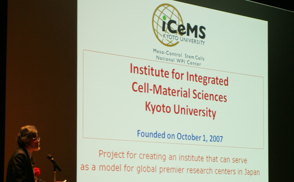 左から中辻憲夫拠点長、Wieland Huttner MPI分子細胞生物学・発生学研究所所長、Fiona Wattケンブリッジ大ウェルカム・トラスト幹細胞研究センター副所長、山中伸弥教授