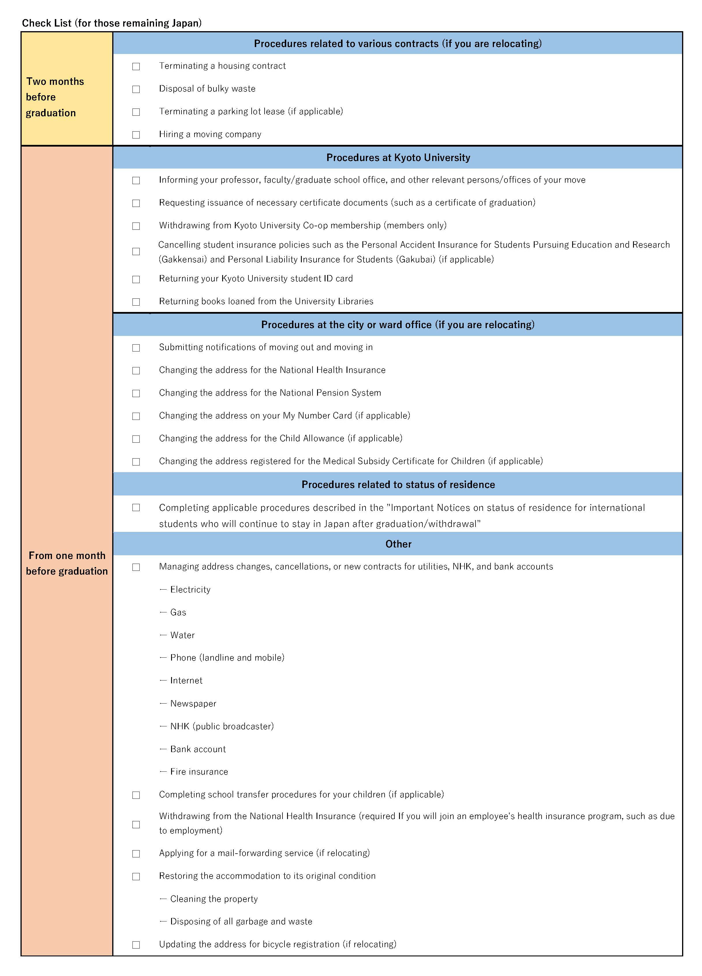 - For those remaining in Japan (such as for enrollment in another university in Japan, employment, or job hunting)