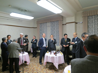 Following the meeting, a party was held in another room, which was opened with a speech by Chair Otaka and a toast proposed by Deputy Chair Futaki. During the party, members representing alumni branches talked about possible exchanges between their branches or the recent activities of their branches. Participants enjoyed conversations until the end of the party.