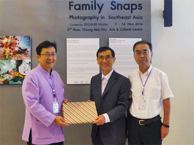 Vice-President Rome Chiranukrom of Chiang Mai University, left, Vice-President Junichi Mori, center, and Prof Mamoru Shibayama, right