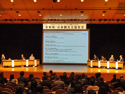 The U.S.-Japan Research Institute (USJI) Symposium, "Japan as a Tourism Nation: What Kyoto Can Do", was held at the Kambaikan Building of Doshisha University on 6 December 2014. Approximately 200 participants attended, including delegates from the higher education, industrial, and government sectors, as well as members of the general public. The U.S.-Japan Research Institute, the organizer of the symposium, is based in Washington DC, and is jointly operated by eight Japanese universities, including Kyoto University. Kyoto University was represented at the symposium by Prof Junichi Mori, vice-president for international relations and director-general of the university's Organization for the Promotion of International Relations (OPIR). Prof Mori also serves as vice-chair of the USJI.