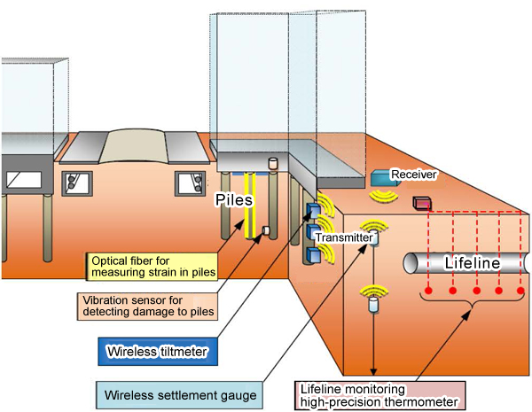 Our E-Defense experiment demonstrated that the system we have been working on can enable accurate monitoring of the condition of soil and piles supporting a building, which are usually hidden from view.