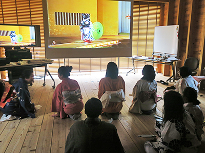 Break time was spent watching videos of dance performances at the prestigious Kyoto Shijo Minami-za theater and enjoying each other's company.