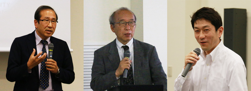 From left: iCeMS Director Susumu Kitagawa, WPI Program Director Toshio Kuroki, and iCeMS Deputy Director Uesugi