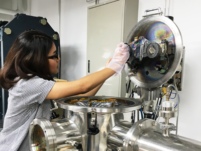 During the five weeks of training, Ms Rueangon, who had studied gallium-doped ZnO (GZO) conductive transparent films at KMITL, produced an aluminum-doped ZnO film and compared it with a GZO film, such as by annealing them under various conditions. Mr Ammar, meanwhile, built on his knowledge of titanium dioxide (TiO2) to produce a TiO2 coating film using tetraethyl orthosilicate (TEOS). Working on these projects, both students acquired a wide variety of lab skills, including sputtering and surface characterization.