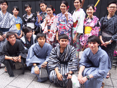 The interns also had opportunities to enjoy summer in Kyoto in the company of their Japanese peers, attending a fireworks display and Yoi-yama (Gion Festival Eve) festivities together, even wearing yukata for the former occasion.