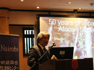 The JSPS symposium was held the following day with about 150 attending. President Yamagiwa, who had directed JSPS's Nairobi Research Station in the early 1980s, delivered a keynote address reflecting on a half century of African studies at the University. Referring to his own and fellow scholars' experiences, he explained that KU primatological research in Africa had followed a trajectory from "discovery, through mutual understanding, to collaboration".