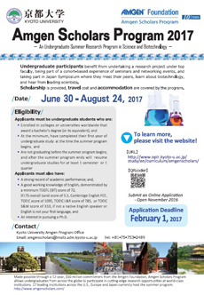 Kyoto University is pleased to announce the opening of applications for the 2017 Kyoto University Amgen Scholars Program.