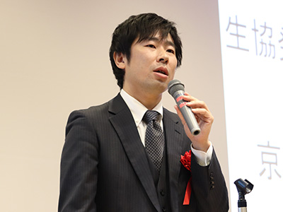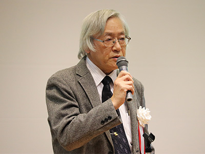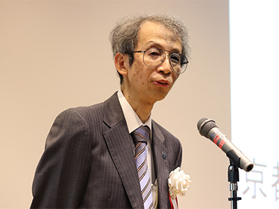 Ms Keiko Murakami, vice mayor of the city of Kyoto, and Ms Tatsuya Nakajima, senior director of the Kyoto University CO-OP, introduced the municipal "Kyoto, the City of Health and Longevity" initiative and "CO-OP's Health Promotion Activities", respectively. KU President Juichi Yamagiwa followed these with a "Healthy Campus Declaration".