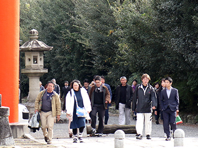 The forum was preceded by a short walk with 2008 Olympic medalist Nobuharu Asahara. Around 30 students, faculty, and staff joined the former track-and-field athlete in a fun-filled 20-minute walk from the University's main campus to the neighboring Yoshida Shrine.