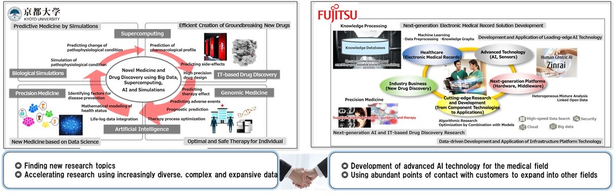 The two-year undertaking involves the use of electronic patient records and other medical data from Kyoto University Hospital, and the Fujitsu Group's AI technology, Fujitsu Human Centric AI Zinrai. Participating KyotoU physicians and bioinformatics researchers, together with AI engineers from the Fujitsu Group, will use these data and technologies to explore new approaches to diagnostic support and drug discovery, with a view to accelerating R&D spawning a new generation of advanced medicine.