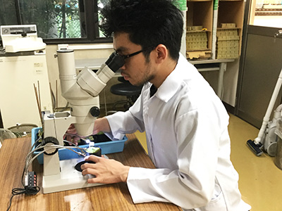 Mr Lopez conducting an experiment in Professor Takashi Aoyama's laboratory