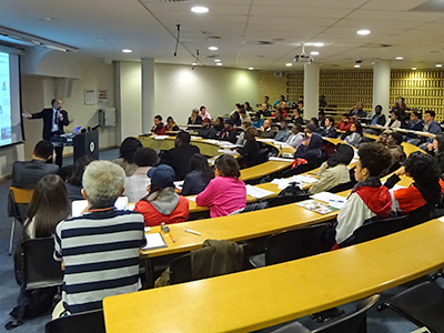 The South Africa-Japan Academic and Student Exchange Fair on the next day attracted around 140 participants, including local high school and university students with high interest in studying in Japan, as well as representatives of the participating Japanese organizations. Following presentations on topics such as the appeal of Japan as a study destination, available scholarships, and the Japan Exchange and Teaching (JET) program, university officials introduced their own institutions and programs. Dr Kamiya detailed Kyoto University's study environment using a video clip specially produced for prospective international students, entitled “Campus Life”. The University's consultation booth, meanwhile, was visited by around 20 UCT students with a wide variety of academic interests, including mathematics, pharmaceutical sciences, business administration, and engineering. The students asked Dr Kamiya about matters such as how to apply for admission and how to select the right laboratories for their needs.