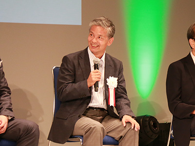 The second part was a talk session entitled "Let's Talk with KUIAS About Science". The speakers answered audience questions, and discussed the joys of science based on their experiences. They also offered words of encouragement to the high school students in attendance. The session featured an audience response system, which enabled the speakers and attendees to discuss science together, with comments and responses displayed on stage.