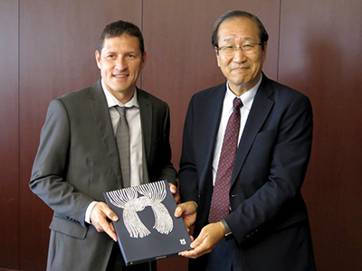 iCeMS Director Kitagawa (right) and CNRS Principal Investigator Farrusseng