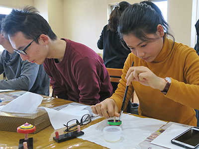 Student Lounge KIZUNA's January event was a Japanese spinning-top making workshop, held on Thursday the 17 th at the Kyoto Handicraft Center.