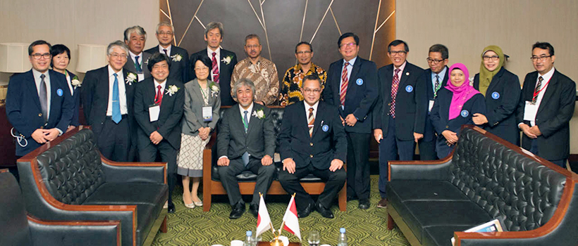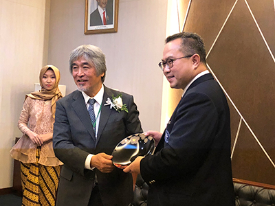 On 1 December 2018, a KyotoU delegation led by President Juichi Yamagiwa paid a courtesy visit to the Rector of Bogor Agricultural University (Institut Pertanian Bogor, or IPB), Indonesia. The group was in Bogor to take part in the Kyoto University International Symposium on Education and Research in Global Environmental Studies, being held at IPB from 30 November to 2 December. The visit began at 11:00, and featured a meeting in the special guestroom of the IPB International Convention Center (IICC), which was the symposium's venue.