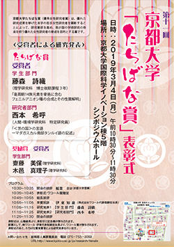 Winners of the 2019 Tachibana Award and Honorable Mention Award in both student and researcher categories have been announced as below, with an award ceremony set to take place Monday 4 March in the Symposium Hall of the International Science Innovation Building.