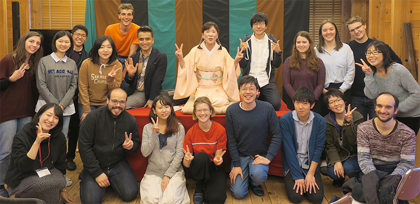 Next, she led a rakugo workshop, in which participants practiced two short stories in pairs, with some going on the stage to perform in front of the others. Under Sayohime's instructions, students learned how to use their voices, gestures, and facial expressions to achieve Japanese-style humor.