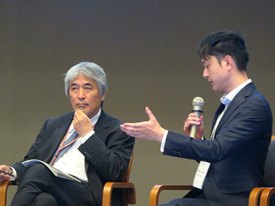 The roundtable at the 11 May symposium, held at ICC Kyoto's annex hall, was themed "Dialogue with President Juichi Yamagiwa: How we, as young researchers, want to achieve sustainable development”. Fourteen early-career scholars from varied academic backgrounds sat down with President Yamagiwa to discuss their research and share their ideas for contributing to a sustainable future. The session was enriched by comments from: Associate Professor Masashi Taketani of the University's Institute of Economic Research; Mr Takeshi Shimotsuma, supervising director of global environment and energy at Kyoto City's Environment Policy Bureau; and Professor Yasuyuki Kono, Director of iSO-KU, Vice-President for International Strategy, and researcher of environmental coexistence at KyotoU's Center for Southeast Asian Studies (CSEAS).