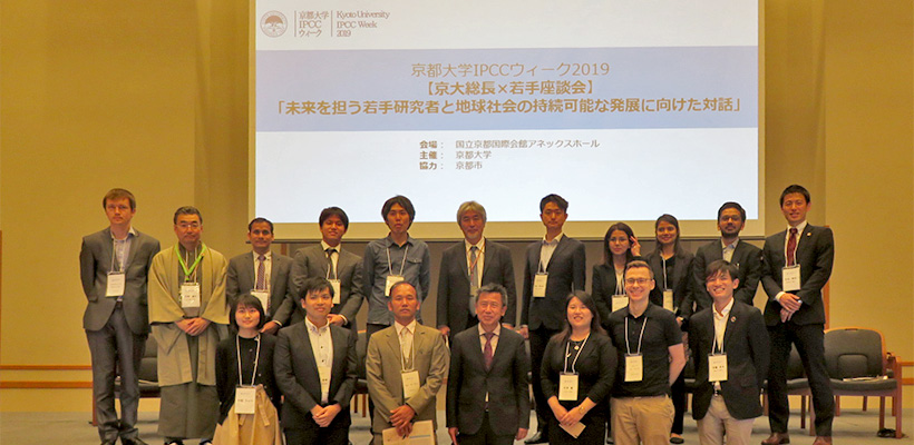 On 11 May 2019, the International Strategy Office (iSO-KU) and the Kyoto University Research Administration Office (KURA) hosted a roundtable on sustainability featuring President Juichi Yamagiwa and the University's early-career researchers. The discussion was part of a symposium organized by the Kyoto municipal government to coincide with the 49th session of the Intergovernmental Panel on Climate Change (IPCC), which was held from 8 to 12 May at the Kyoto International Conference Center (ICC Kyoto). The roundtable was also part of the Kyoto University IPCC Weeks 2019, a series of activities planned by iSO-KU and KURA, taking place from 13 April to 27 June to introduce the University's environmental initiatives to the local community.