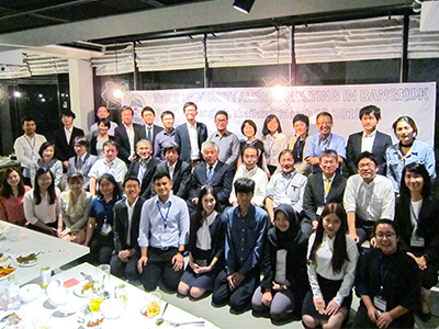 The symposium, meanwhile, was followed in the evening by a KyotoU alumni reunion, held in Bangkok's Asoke area. About 60 graduates and other attendees enjoyed the opportunity to cultivate friendships, arranged by Mr Takashi Sasaki, chairman of the local Thai Hyakumanben Kai alumni association.