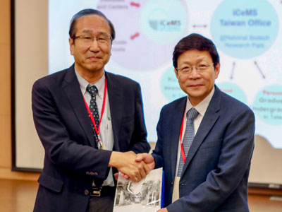 iCeMS Director Kitagawa (left) and Academia Sinica Vice President Fu-Tong Liu
