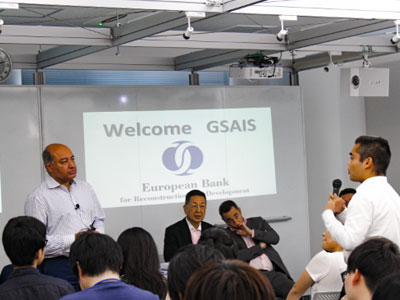 The lecture by Sir Chakrabarti was then presented by the Graduate School of Advanced and Integrated Studies in Human Survivability (GSAIS, or "Shishu-kan") as this academic year's second Special International Seminar, intended for those aspiring for an international career. With students attending from GSAIS and other University departments, the presentation offered an overview of EBRD, and detailed the bank's expanding scope of activities and the skills and qualities required for these efforts.