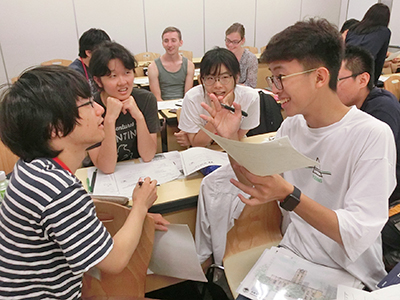 International and Japanese students working together during the intermediate Japanese-language class