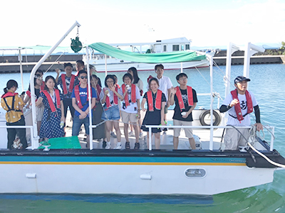 • Shiga Prefecture, where in one day, participants toured Hikone Castle, attended a lecture by University of Shiga Prefecture (USP) Associate Professor Naoshige Goto on the "Environment of Lake Biwa: Formation of Large-Scale Oxygen-Deficient Waters", conducted microscope observations of Lake Biwa's water samples, and cruised the lake aboard USP's research vessel