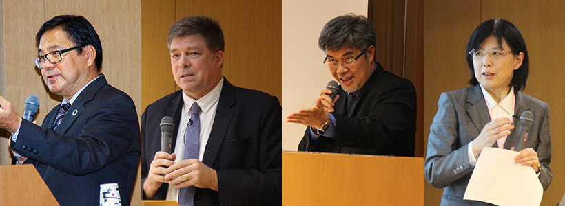 Toward the end of the event, a panel discussion, entitled "What Can Academia do for SDGs in Asia", took place featuring four experts: Dr Charles Bolico, director of the UN Food and Agriculture Organization (FAO) Liaison Office in Japan, Mr Septia Supendi, manager of ACE, Professor Yosuke Yamashiki, vice-dean of GSAIS, and Associate Professor Takashi Kamemura, also of GSAIS.