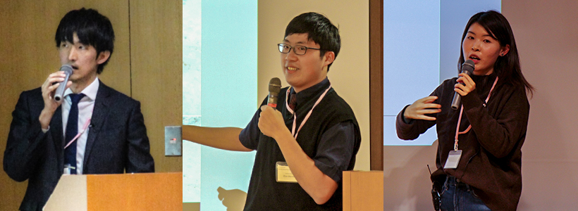 Student presenters, from left: Yugo Tanaka (GSAIS), Chun Wai Hui (Graduate School of Agriculture), and Chuying Zhou (Graduate School of Biostudies)