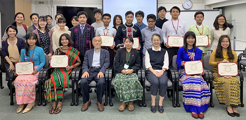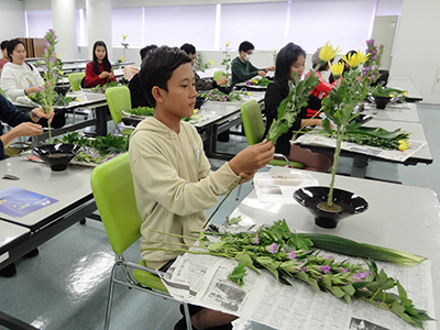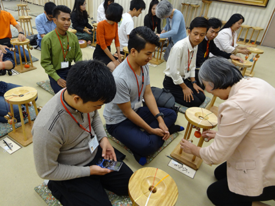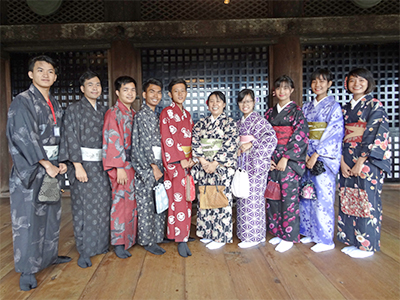 Program activities also included cultural experiences: braided cord-making, flower arrangement, tea ceremony, and kimono -wearing. The Myanmarese students seemed to especially enjoy the kimono experience, spending a whole day in the costume despite being exposed to rain.