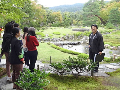 At the Murin-an Japanese garden, listening to guidance by Professor Tomoki Kato of the Kyoto University of Art and Design