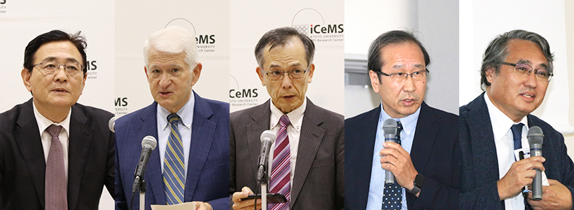 Speakers: Provost/EVP Minato, Chancellor Block, and Director-General Mori; presenters: Director Kitagawa and Professor Tamanoi (from left to right)