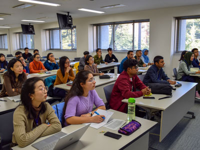 The 18-day program began with the students discussing the Autumn School's main topics: forestry, forest resource management, waste management, water treatment, agriculture, natural disasters, and atmospheric environment, which were examined in the context of the participants' home countries and in relation to the "cultures underlying environmental problems". Having gained a shared understanding of the issues confronting each country in relation to these topics, participants went on to learn about relevant aspects in Japan through a special lecture series and field excursions. There was also a seminar on atmospheric environmental chemistry featuring hands-on experiments taught by a guest lecturer from the University of Lille, France.