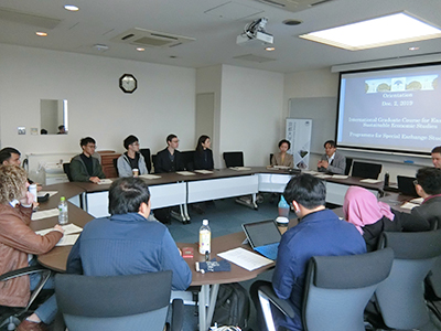 From 2 December 2019 to 31 January 2020, as part of its "Programme for Special Exchange Students", the Graduate School of Economics enrolled nine undergraduate students from four partner institutions in its "International Graduate Programme for East Asia Sustainable Economic Development Studies (East Asia Programme)". The students were from Thammasat University (Faculty of Economics and Faculty of Political Science), Kasetsart University (Faculty of Economics), and Chiang Mai University (Faculty of Economics), Thailand, and Gadjah Mada University (Faculty of Economics and Business), Indonesia. The Programme was organized under the Wild & Wise Collaborative Learning Program with support from Kyoto University.
