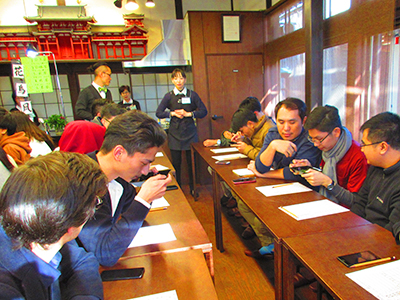 The exchange students also took part in fieldtrips, held with support from the prefecture of Kyoto, visiting Keihanna Open Innovation Center @ KYOTO (KICK), Uji Tea Ceremony Hall "Takumi-no Yakata", and Byodoin Temple. The trips were part of an East Asia Programme course, "Field Research in Japan", and joined by KyotoU students taking the course or interested in studying abroad. The program also included a special lecture, "Japan at Play".