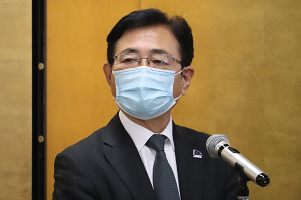 Addressing a crowd of faculty and staff, President Minato introduced the eight newly inaugurated executive vice-presidents — Kyoko Inagaki, Takayuki Kitamura, Norihiro Tokitoh, Akinari Hirai, Takao Hirajima, Akira Murakami, Takashi Muranaka, and Yuko Kuno, the last of whom will be serving on an external, part-time basis — who then each delivered an inaugural address.