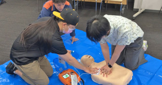 News Published on 2024/07/12 タグ Education Lecture on basic life support and AED use held for international students