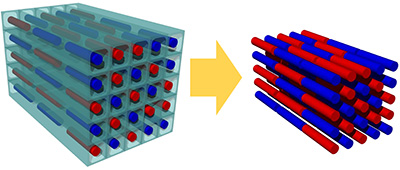 The team adopted a templating approach, building what may be imagined as "removable scaffolding" using materials called porous coordination polymers (PCPs). These microscopic materials have numerous pores and a climbing-frame structure which functions as a kind of frame within which two polymers may blend together under chemical treatment. Once the process is complete the PCPs are removed, much as workmen remove the supports once a building is complete.