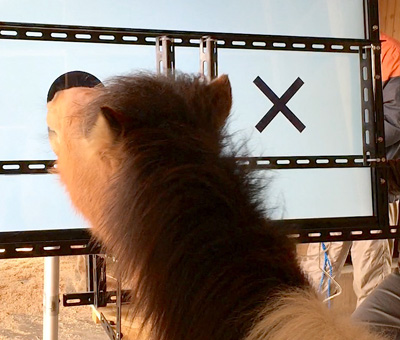 The ponies were shown two shapes on the touchscreen, one of which the researchers arbitrarily decided was correct. The ponies received a carrot piece as a reward when they tapped their muzzle on the "right" answer.