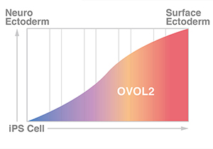 Increasing the expression of OVOL2 perturbs the ectoderm fate of an iPS cell from neuroectoderm to surface ectoderm.
