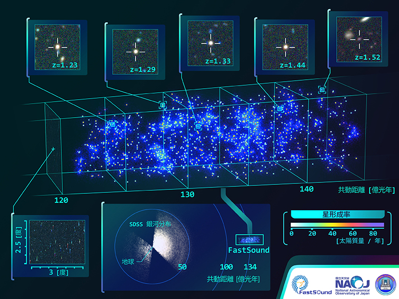 Image :A 3D map of the Universe spanning 12 to 14.5 billion light years (Credit: NAOJ; Partial data supplied by: CFHT, SDSS)