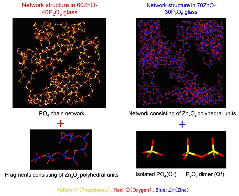 The changing network structure of phosphate glass and zinc glass (Kyoto University / Yohei Onodera)