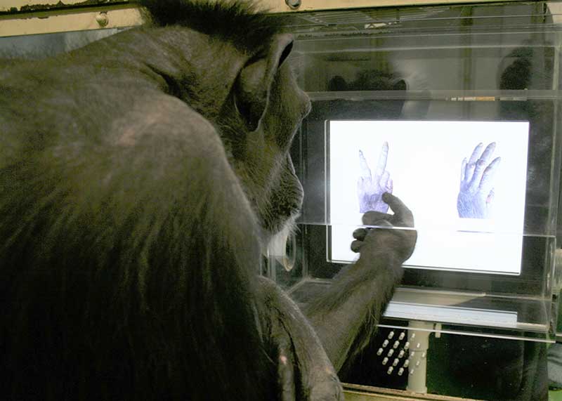 Seven chimpanzees of different ages and sexes living in the Primate Research Institute at Kyoto University were part of the experiment. They sat in a booth housing a computer-based touch screen and were trained to choose the stronger of two options (based on the rules of the game) they saw on screen. They first learnt the paper-rock sequence, then the rock-scissors one and finally scissors-paper. Once they knew how the pairs fitted together, all the different pairs were randomly presented to them on screen. Five of the seven chimpanzees completed the training after an average of 307 sessions.